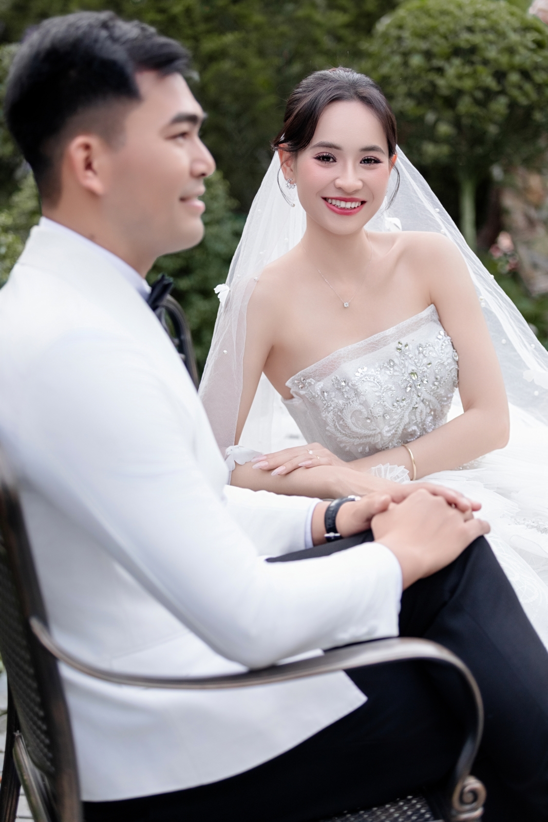 Vẻ đẹp của cô dâu được giữ ở trạng thái tinh khiết nhất: làn da, ánh mắt, cảm xúc.