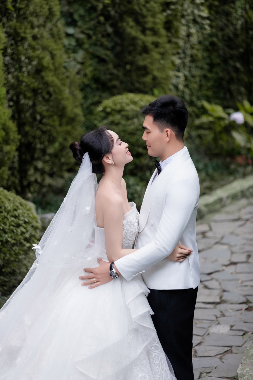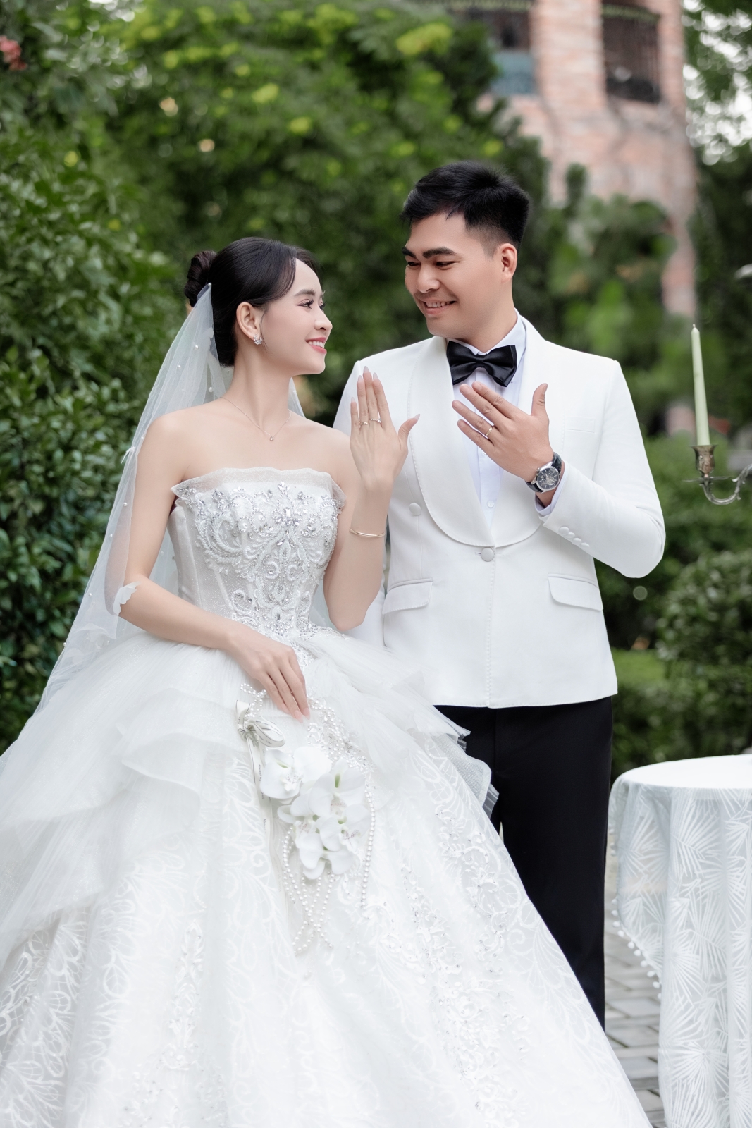 Set chụp tập trung vào cảm xúc nguyên bản: ánh nhìn khép lại, đôi tay chạm nhau, khoảnh khắc trước khi mọi thứ trở thành “chúng ta”.