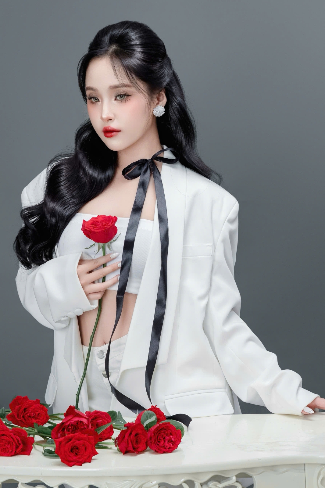 Vest trắng mang đến vẻ đẹp sắc nét, hiện đại và đầy bản lĩnh, còn hoa hồng đỏ lại là điểm chạm của đam mê và quyến rũ. Khi hai gam màu đối lập gặp nhau, tạo nên một concept vừa sang trọng vừa cá tính, đúng kiểu cô nàng không cần quá nhiều vẫn đủ nổi bật.